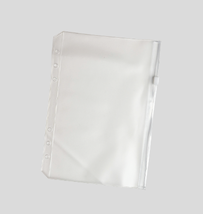 A5 plastvasi með rennilás. Tilvalinn til að geyma miða, skjöl, og aðra fylgihluti í opinni bók.