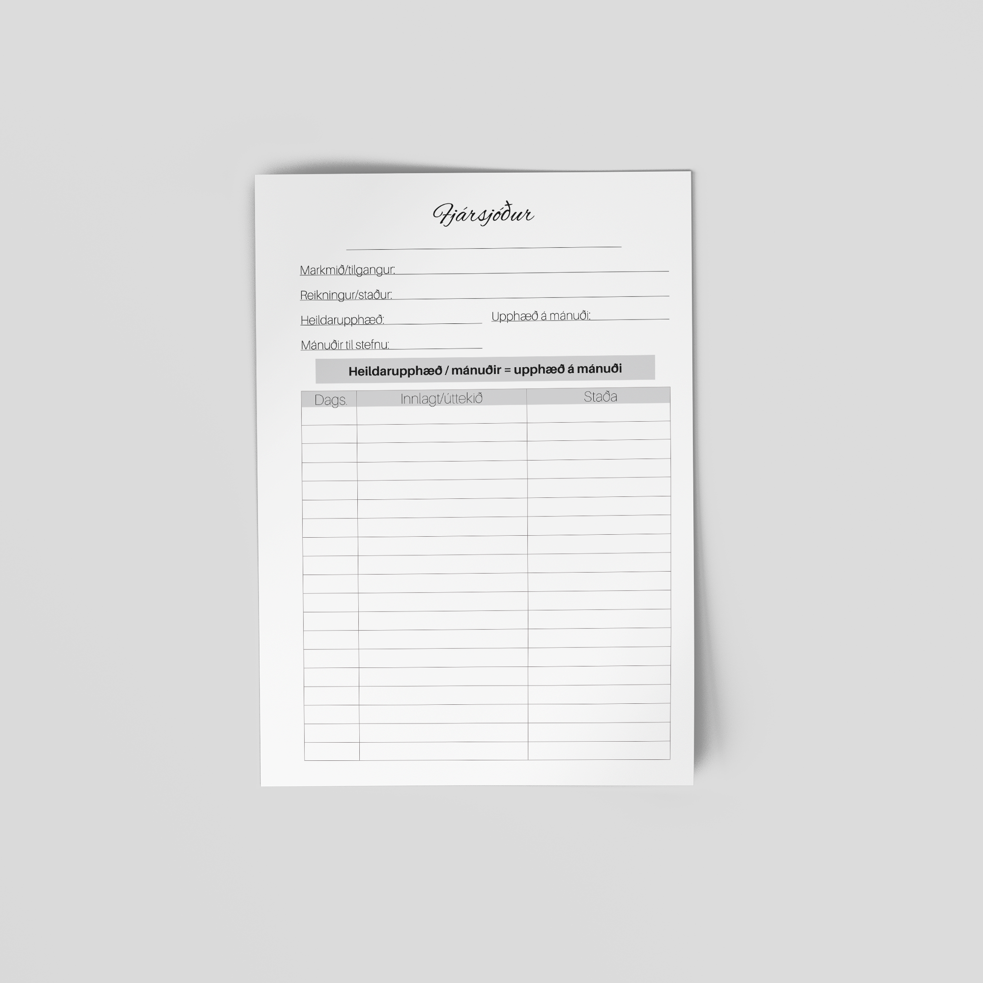 Skráningarblöð fyrir fjármálin. Prentað beggja vegna á 100 gr. pappír. 7 stk í pakka